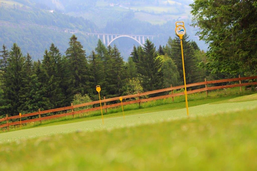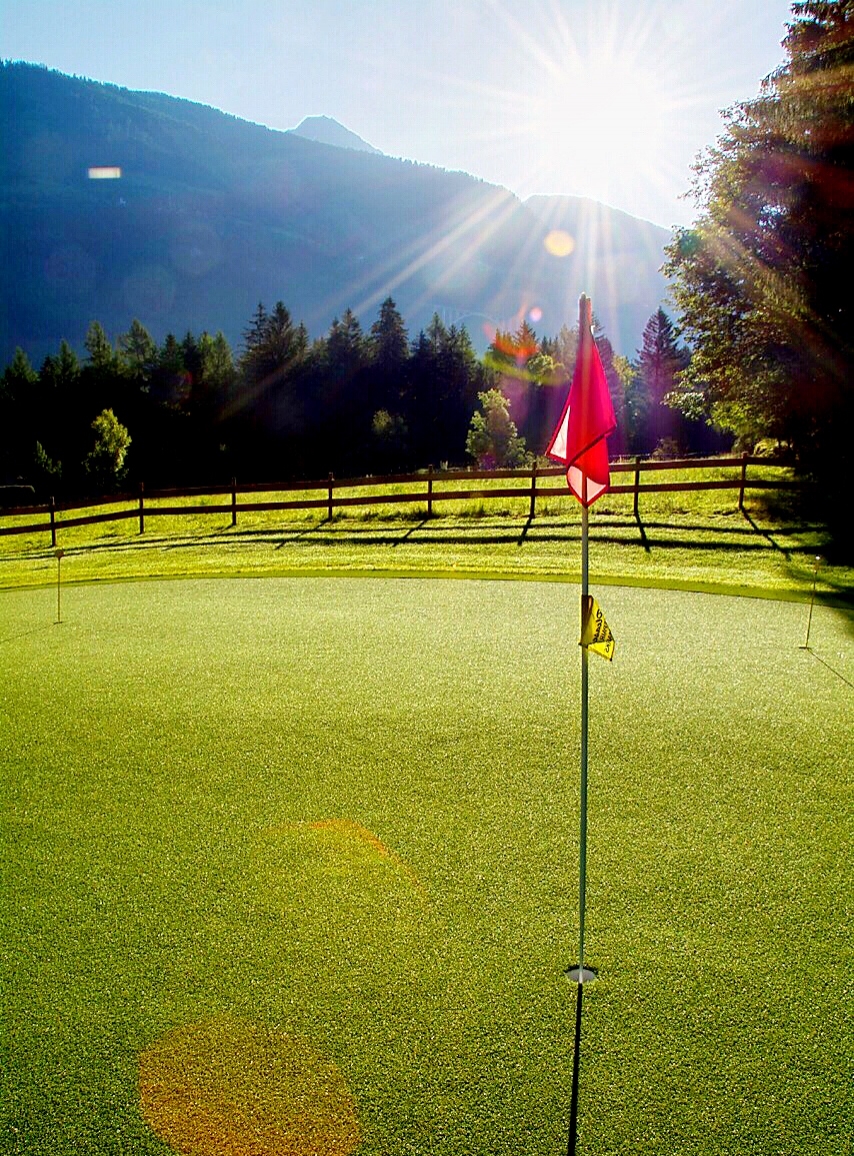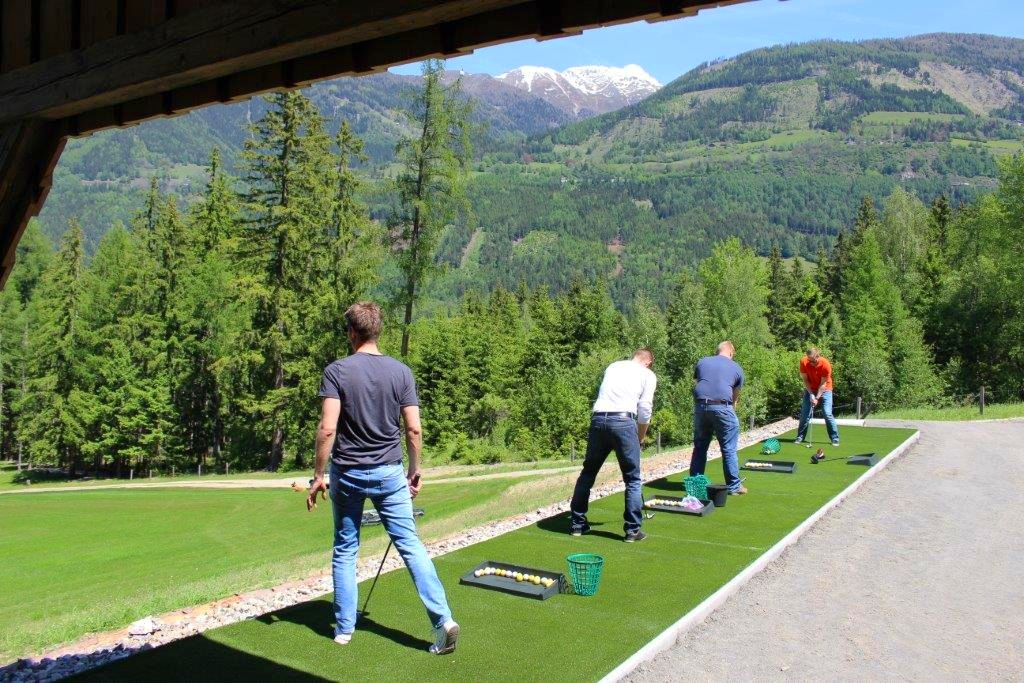 Am 320 m2 Kunstrasen und an den teilweise überdachten Abschlagplätzen genießen Sie den schönen Golfsport in der freien Natur der Hohen Tauern.